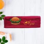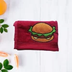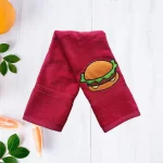 Maroon cotton towel with embroidered burger design